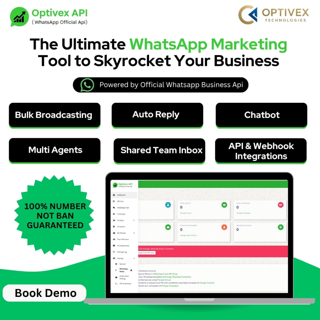 Optivex API is Official Whatsapp API Platform - Send Bulk Whatsapp Marketing Without Number BAN .